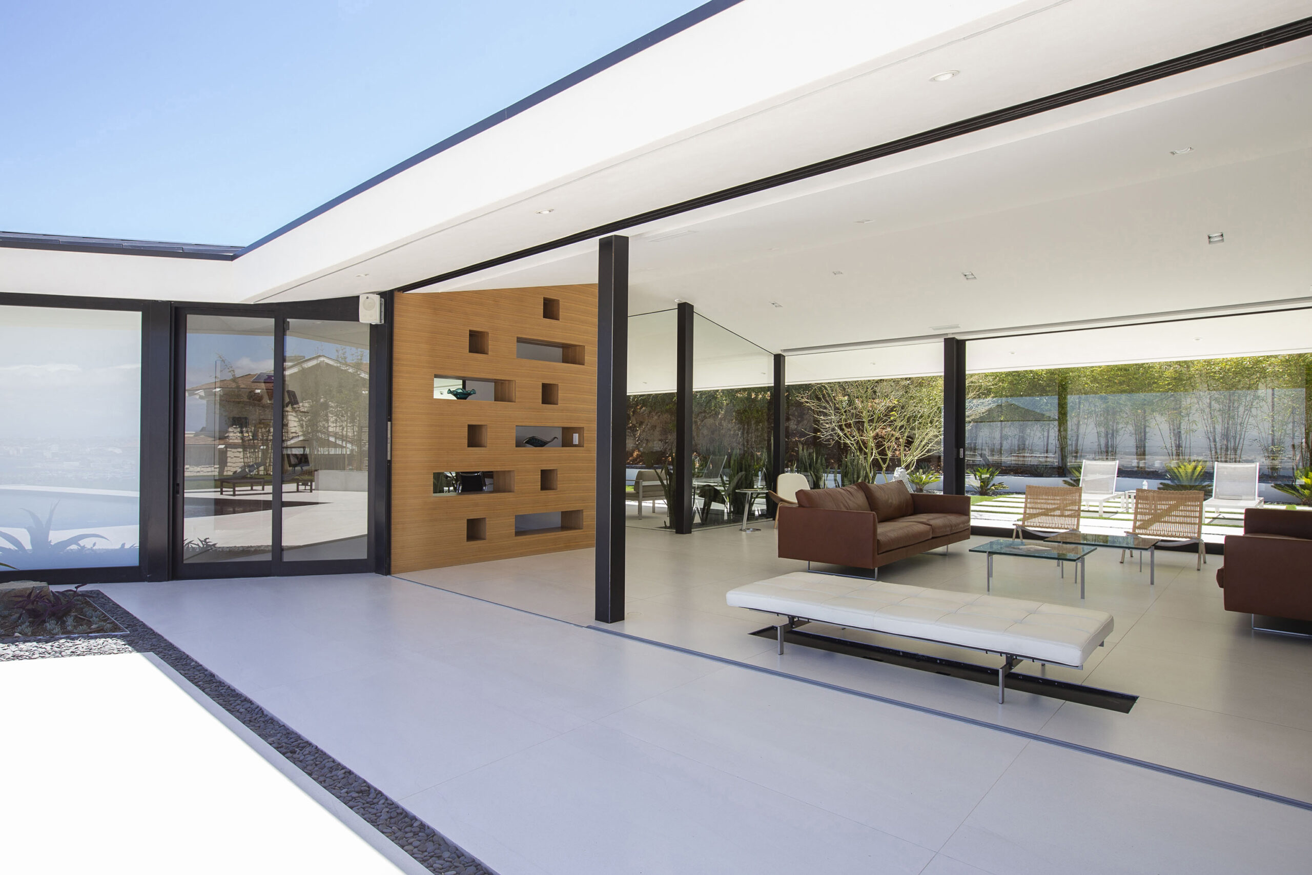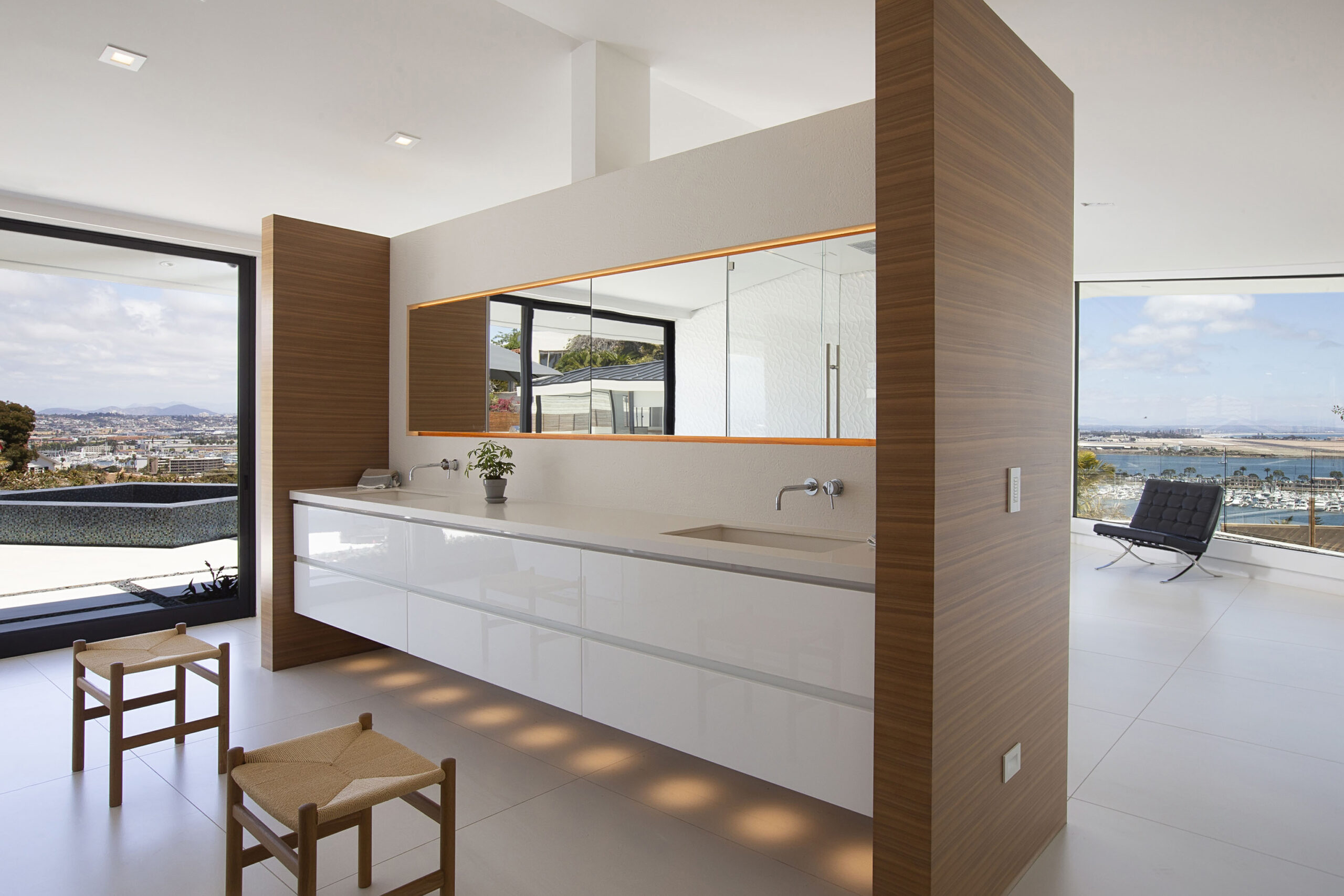 Ballast Point is a striking modern estate designed to capture expansive ocean views while maintaining a seamless indoor-outdoor flow. The home showcases bold geometric architecture, clean lines, and a sophisticated mix of natural textures and glass.