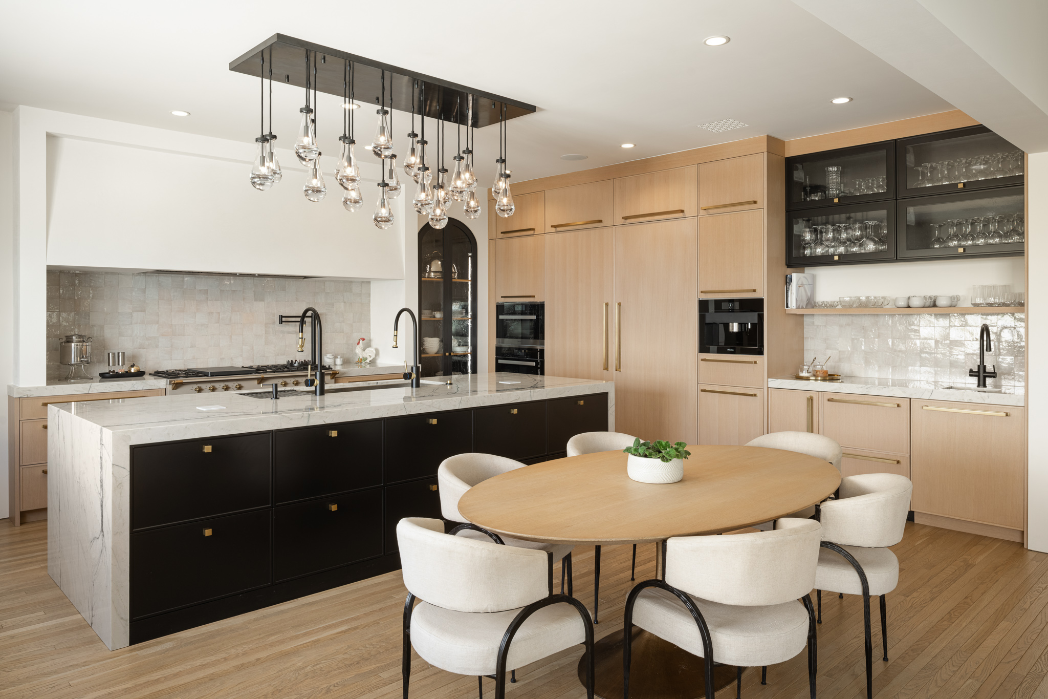 The kitchen is a true masterpiece, featuring custom cabinetry, elegant stone finishes, and a spacious island perfect for gathering. A hidden butler’s pantry, wine storage, and integrated shelving add both convenience and sophistication. Living spaces are anchored by large windows and sliding doors, connecting to outdoor areas.